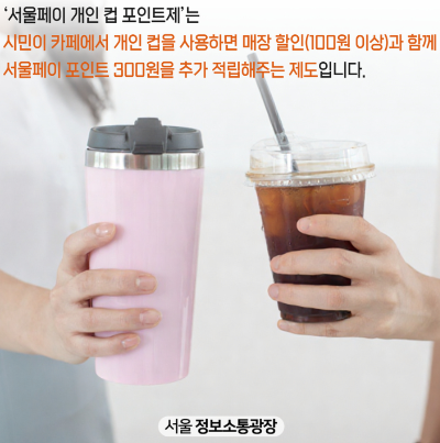 서울페이 개인 컵 포인트제는 참여 카페에서 개인 컵을 사용해 음료를 주문하면,