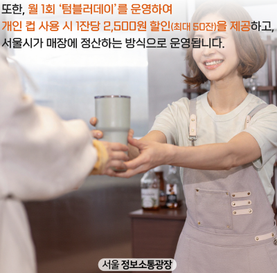 월 1회 '텀블러데이'를 운영할 수 있게 지원합니다.