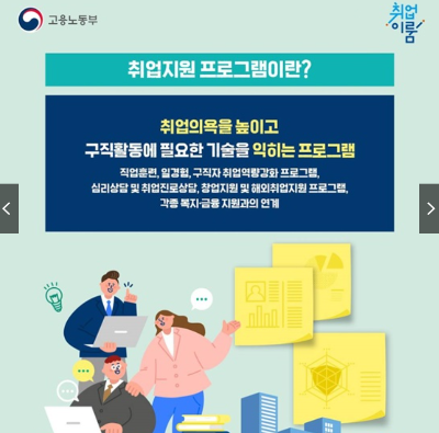 국민취업지원제도 참여자를 대상으로 다양한 취업지원 프로그램과 구직활동 프로그램을 제공합니다.