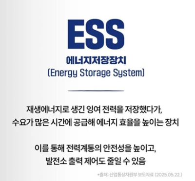 ESS는 단순히 전기를 저장하는 장비가 아니라, 재생에너지 확대의 필수 기반이자,