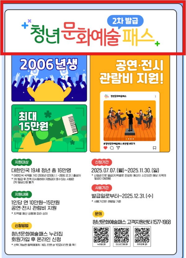 ‘청년 문화예술패스’ 7월 7일부터 추가 신청 시작 (2006년생 필독)