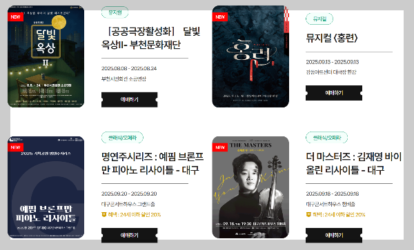 현재 확인된 할인 대상 주요 공연은 다음과 같습니다.