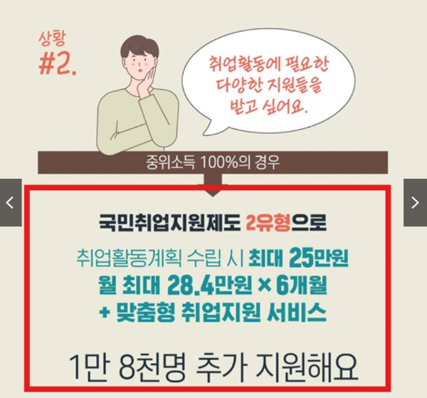 또는 공공일자리사업에 참여하고 있는 사람 등은 지원 대상에서 제외됩니다.