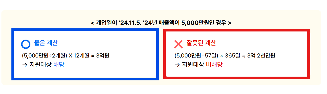 - 연매출 요건: 2024년 또는 2025년 연매출 0원 초과 ~ 3억 원 이하