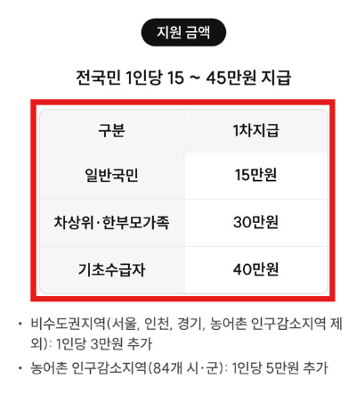 - 그 외 지급대상자: 1인당 15만 원