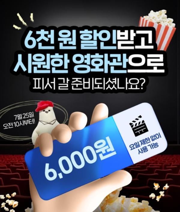 여기에 정부 지원 6천 원까지 적용되면, 사실상 무료 수준으로 최신 영화를 관람할 수 있는 셈입니다.