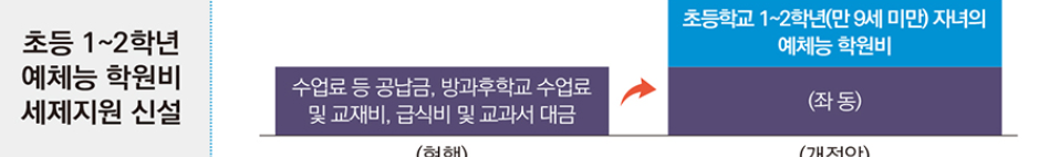기획재정부는 내년부터 만9세 미만, 즉 초등학교 1~2학년 자녀의 예체능 학원비를