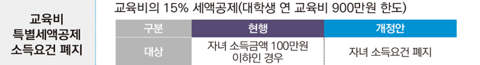2. 교육비 세액공제 소득요건 폐지로 대학생 자녀도 혜택