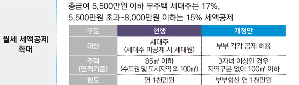 세제 개편안은 교육비와 보육수당뿐 아니라 주거비 절감에도 초점을 맞췄습니다.