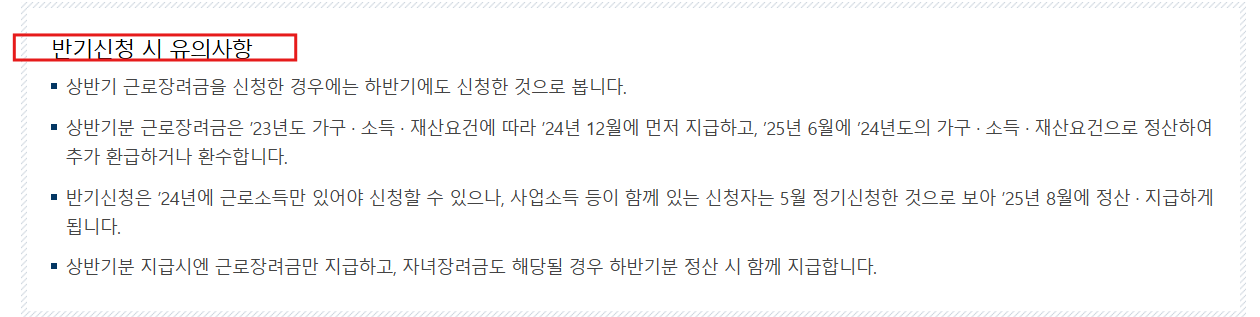 반기신청은 신청 후 빠르게 받을 수 있지만, 금액이 절반 수준입니다.